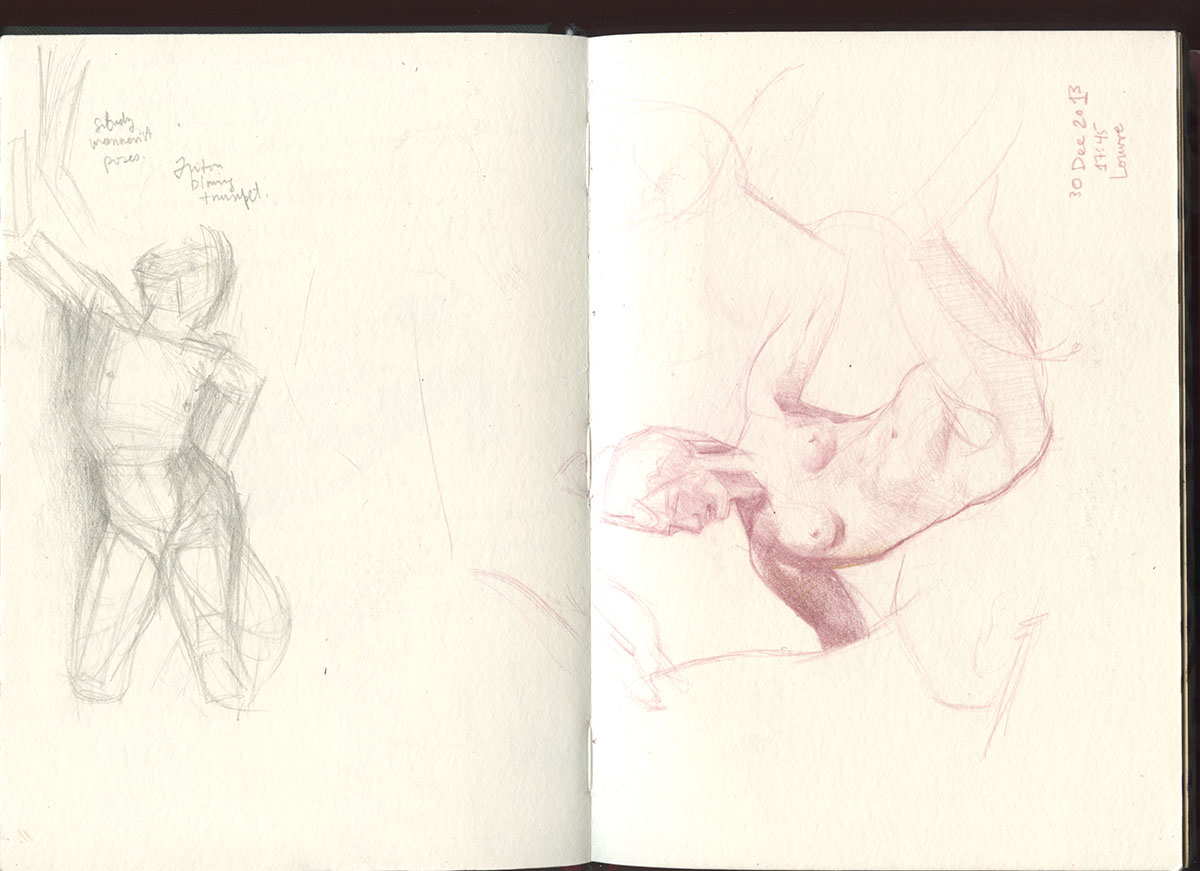 La salle des Caryatides21 Dec 2013 - 1 June 201421.5cm x 15cmbought at the Sennelier across from the LouvreParis, Gent, San Francisco, Los Angeles, Helsinki, Berlin, Indianapolis, NYC, Chicago