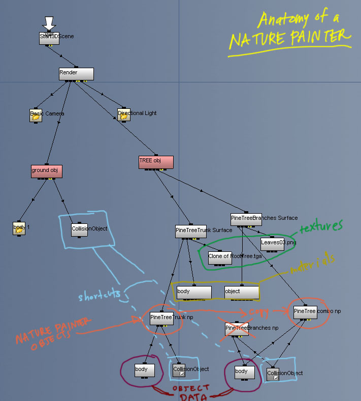 Nature Painter channels are easy to set up. They take an Object Data and a Collision Object as children.