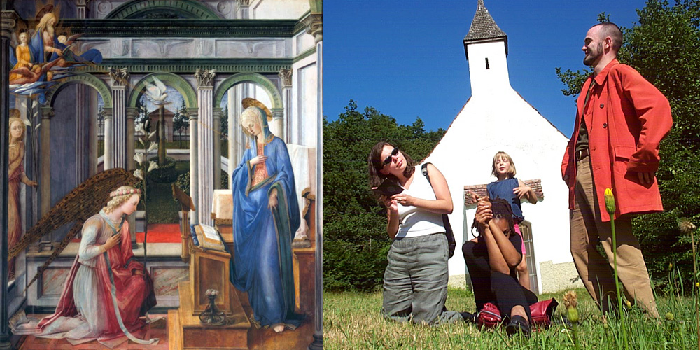 Fittingly, my road to comprehension started with an Annunciation. On vacation in Munich, I went with friends to the Alte Pinakoteck. This was probably the first time I really gave a thought to how Christan art tries to tell its stories. My husband explained the basic symbolism to me. Mary holds a book, the angel Gabriel comes to tell her she is pregnant, a Lily stand between them. A dove of the holy spirit swoops down from heaven.